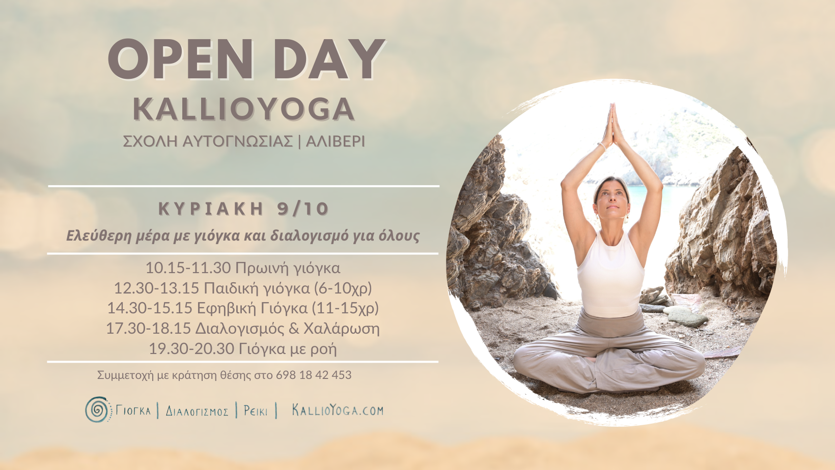 Κράτησε την θέση σου για να συμμετέχεις είτε δια ζώσης είτε οnline στην ανοιχτή μας μέρα γράφοντας ένα mail με θέμα Open Day στο kalliopalli@yahoo.gr ή στο 698 18 42 453.