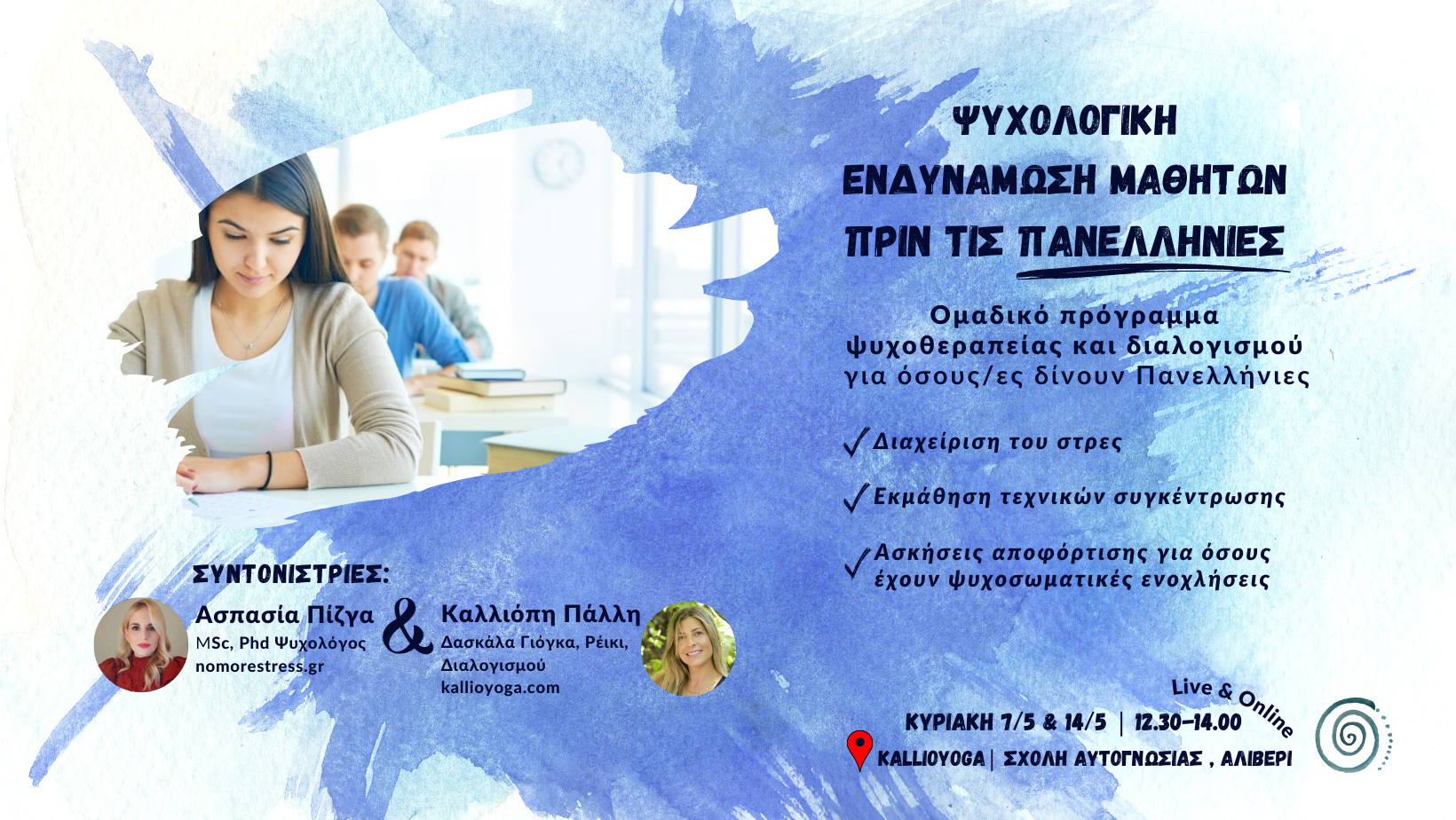 Για περισσότερες πληροφορίες και κράτηση θέσης στην ομάδα ψυχολογικής ενδυνάμωσης μαθητών/ριων, επικοινωνήστε μαζί μας στο kalliopalli@yahoo.gr ή 6981842453.