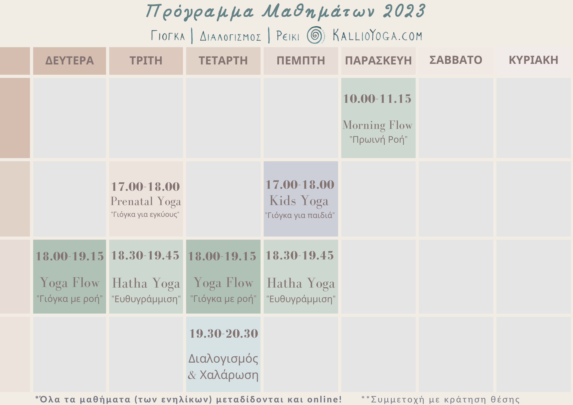 Δες το πρόγραμμα και το στυλ μαθημάτων και έλα σε επαφή μαζί μου στο kalliopalli@yahoo.gr για περισσότερες πληροφορίες σχετικά με την διαδικασία συμμετοχής!
