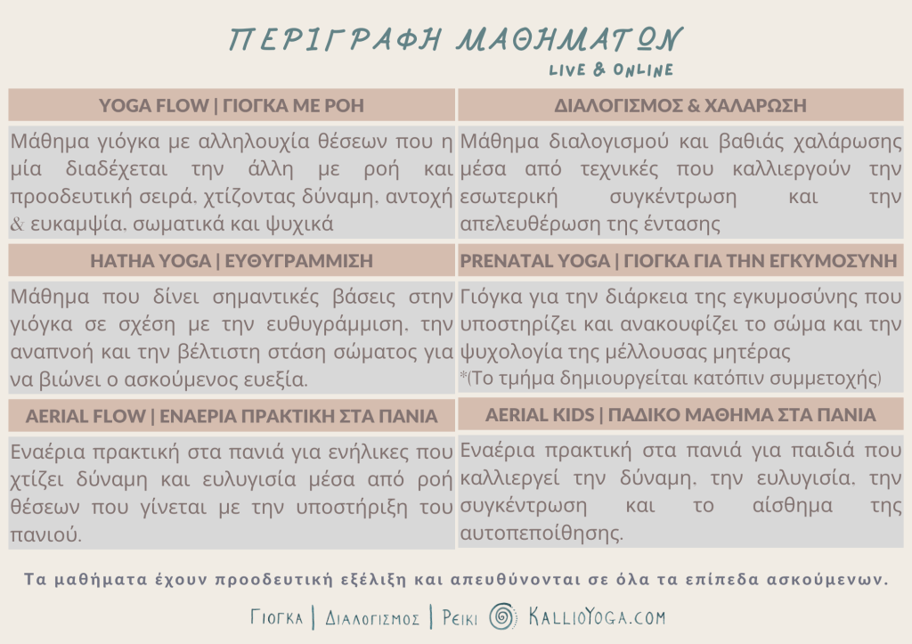 Επιστρέφουμε με χαρά στην γλυκιά ενέργεια της σχολής μας– δια ζώσης και online- για να μοιραστούμε πρακτικές που δυναμώνουν το σώμα και την ψυχή!