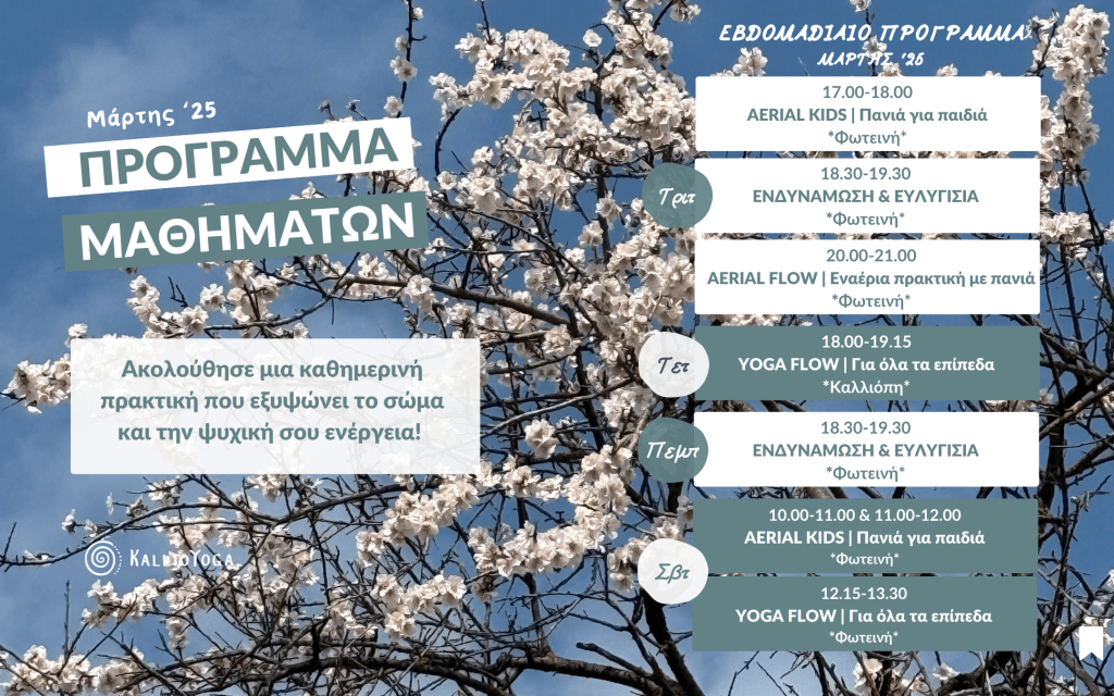 Συναντιόμαστε κάθε Τετάρτη στις 18:00-19.15 | Live&Online, σε ένα μάθημα YOGA FLOW που θα μας βοηθήσει να μπούμε σε ροή, να ξυπνήσουμε την ενέργειά μας και να εναρμονιστούμε με την ανανέωση της φύσης!