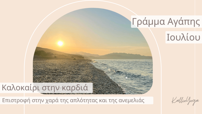 Καλό, φωτεινό και χαρούμενο Ιούλιο αγαπημένοι μου! Είμαστε στην καρδιά του καλοκαιριού και καλοκαίρι σημαίνει χαρά, ανεμελιά, φως, χρώματα, απλότητα αλλά ταυτόχρονα ουσία! Αυτόν τον μήνα εστίασε στην ουσία σου! Εστίασε σε ό,τι σε φέρνει πιο κοντά σε αυτό που αληθινά είσαι! Σε ό,τι σε βοηθάει να επιστρέψεις στην αλήθεια και την χαρά της ψυχής … Συνεχίστε να διαβάζετε Γράμμα Αγάπης Ιουλίου.