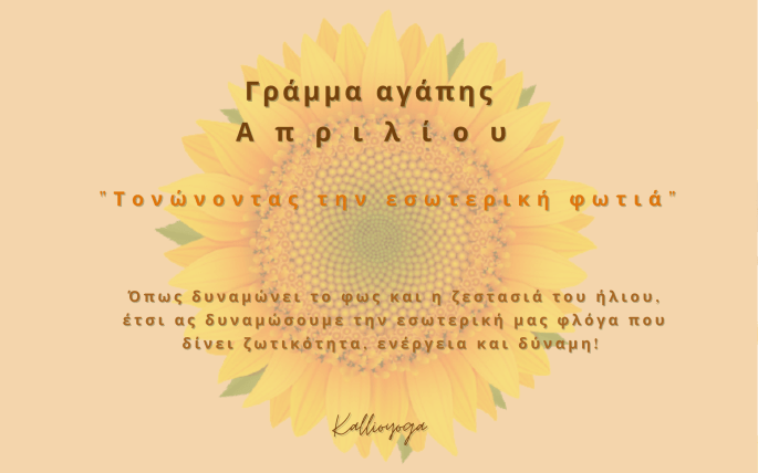 Χαρούμενο Απρίλη φίλοι μου! 🌻✨ Απρίλης σημαίνει ανοίγω και πράγματι είμαστε σε εκείνη την περίοδο του χρόνου που σταδιακά ο καιρός ανοίγει, η φύση ανθίζει, η διάθεση και η σωματική ενέργεια ανοίγουν!!🙌 ✨Γιορτάζουμε το άνοιγμα της φύσης! ✨Το άνοιγμα της μέρας! ✨Το φως! Ο ήλιος δυναμώνει! Η ενέργεια και η ζωτικότητα του Ήλιου αγγίζουν την … Συνεχίστε να διαβάζετε Γράμμα Αγάπης Απριλίου.
