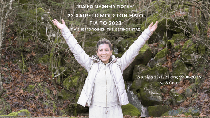 Μέσα από ένα ειδικό μάθημα γιόγκα με 23 χαιρετισμούς στον ήλιοθα καλωσορίσουμε το 2023, ενεργοποιώντας την θετικότητα μέσα μας και γύρω μας! Την ενεργοποίηση των χαιρετισμών θα ακολουθήσει ένας μικρός διαλογισμόςόπου θα θέσουμε νοερά τους νέους στόχους και μια βαθιά χαλάρωση για να αφομοιωθεί όλη αυτή η υπέροχη και δυνατή ενέργεια! Το ειδικό μάθημα αυτό … Συνεχίστε να διαβάζετε Ενεργοποιώντας την θετικότητα για το 2023.
